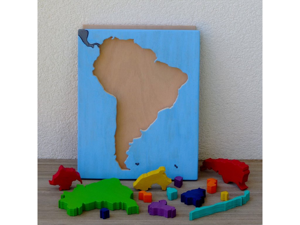 Mapu dodáváme s dřevěnou podložkou, takže složené puzzle můžete pohodlně přenášet nebo dokonce opřít o stěnu, aniž by se jednotlivé státy vysypaly. Při opatrném zacházení je mapu možné i zavěsit na zeď. Navíc vám ke skládačce přiložíme ještě vytištěnou a zalaminovanou černobílou mapu Jižní Ameriky, kterou si můžete položit pod rámeček a skládání si tak výrazně usnadnit, což ocení hlavně menší děti.