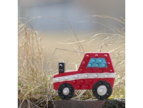 Dřevěný traktor s kolíčky. Hračka a pomůcka na trénování barev, počítání, rozvoj jemné motoriky a soustředění.